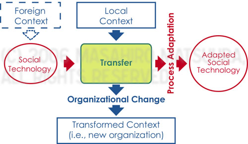 図: Social Technologyの国際移転と適応化・組織変革のモデル