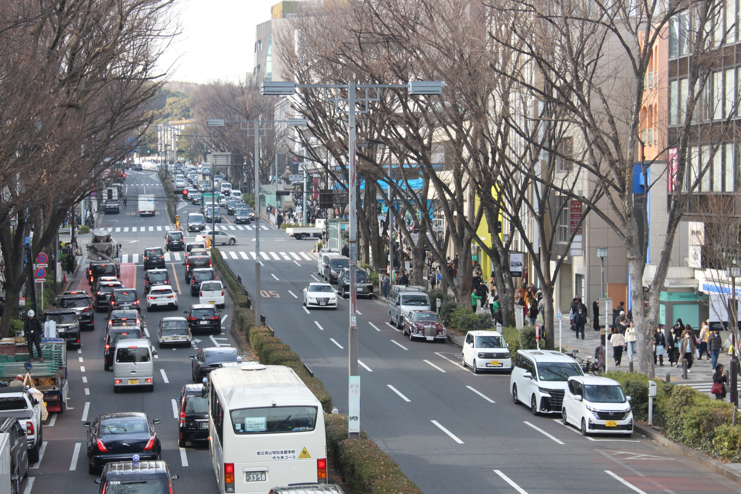 で、青山付近でクルマの写真を撮影できそうな場所・・・ということでまずは銀杏並木へ。紅葉のシーズンならとても近づける場所ではありませんが、いまは真冬。ガラガラでした。