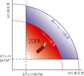 上の事例のように、取引するイシューが「価格」の一つに限定されていると、上の図のように直線上にZOPAを図示できますが、もし2つ以上あった場合はどうやって図示するのでしょう? 一般的に下の図のように図示されます。